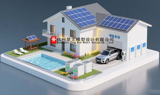 沙盤模型所呈現的,正是當下備受追捧的別墅綠電解決方案。杭州模型公司通過屋頂或庭院的光伏板收集太陽能,轉化為電能后優先滿足家庭日常用電需求 —— 從空調、照明到廚房電器,實現清潔電力的 “自發自用”。